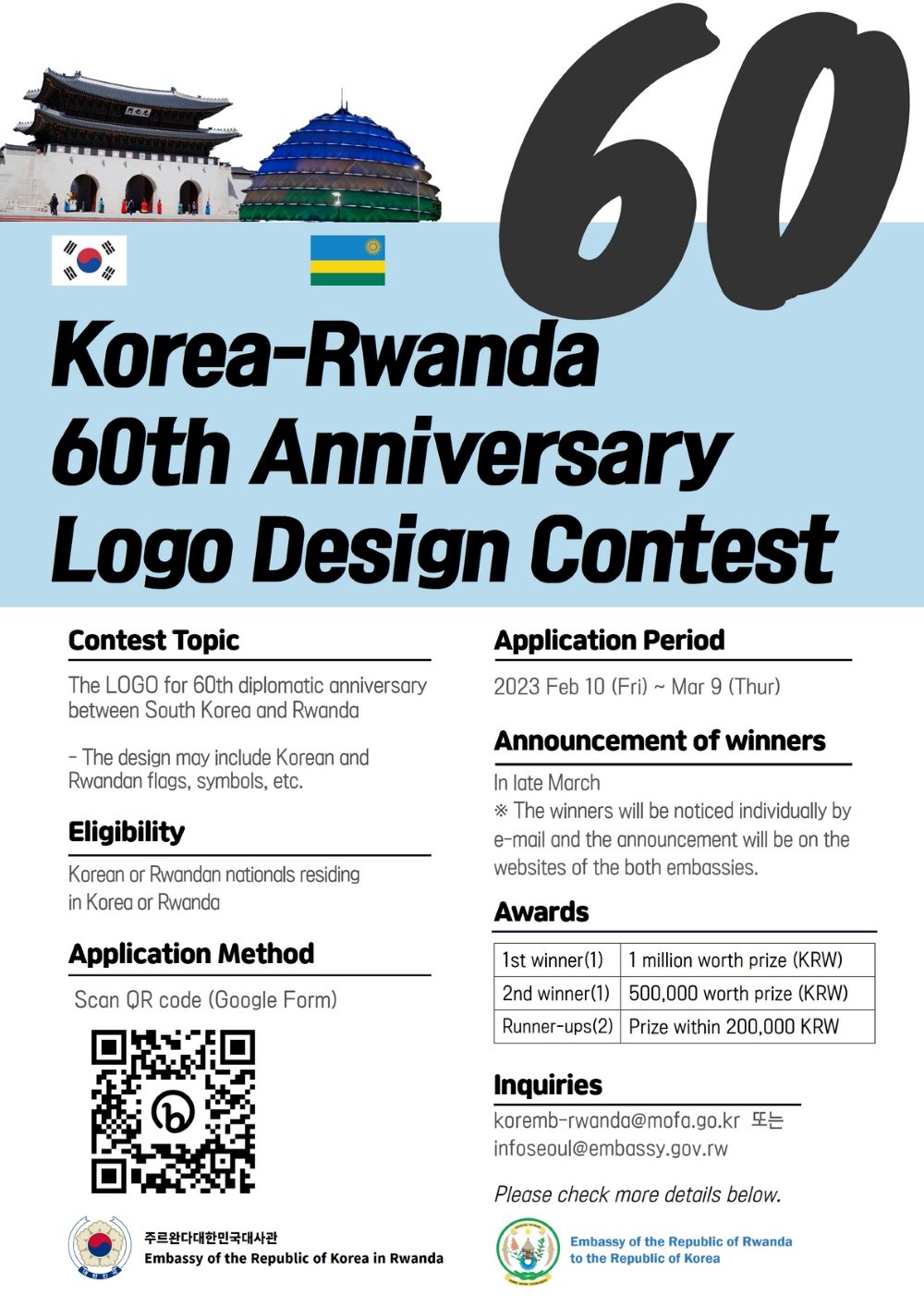 o The Embassy of the Republic of Korea to Rwanda and the Embassy of the Republic of Rwanda to Korea hold all rights to the logo designs of all awardees, including their intellectual property right and their utilization which includes, but not limited to, editing, copying, transmission, distribution, and ownership.